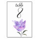 Elegant, modern watercolor Lilac purple flowers table numbers. Perfect for your Wedding. Unique, watercolor of lilac flowers.