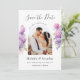 Christian Photograph Bröllop spara datum skildrar vackra botaniska blommigtar i trädgårdens vattenfärg med enkla lilaska blommor. Det innehåller ett par foto, namn och information. På baksidan finns också ett foto tillsammans med Bible Verse Sång i Solomon 3:4: "Jag har hittat den som min själ kärlek." Brans val för vår och sommar-bröllop.