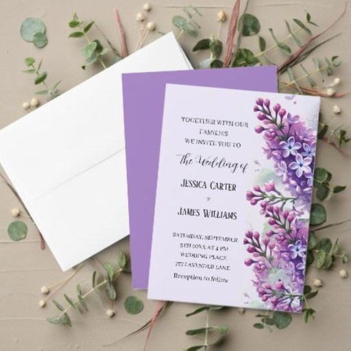 Lila lavender, eucalyptus vattenfärg. Elegant, vackra, lila lavender, blomsterbröllopsinbjudningar. Hand målade vattenfärgslialcs. Anpassa den med dina detaljer.