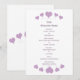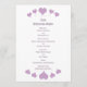 Lilac hearts design wedding menu. Customise this heart menu with your wedding details. Should you require any help with customising then contact us through the link on this page. Lilac heart design personalised wedding menu