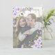 Den här söt bröllop spara datum-kortsdesignen är i dag och i trendig designad för att imitera just trendigets vellumutseende, och har lila ram som är förskönad med lilac lavender lila blommigt grönt, dammig blått guld vattenfärgrey och glitter och har trendhand, med ditt foto bakom texten. (Observera: det övertäckta vellumutseendet är i själva verket inte ett separat biet av översatt papper, det är hela biet-inbjudan.) En del av en matchande bröllop-svit. Copyright Elegant Inbjudan, alla höger reserverade.