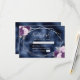 OSA kort i elegant bröllop har en silver-geometrisk ram som är dekorerad med lilac-, lila- och silver-blommigt-buketter på en marin blå faux-folie. I anpassadet kombineras silver grått med vismisk handskrift och kopparplåt typsnitt. Den blå foliebilden upprepas på baksidan.