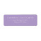 Den här vackra returadressetiketten bröllop har en vacker vit typografi på en mjuk lila vid en ceremoni i vår eftermiddagen. Lavendelpastelletiketter är ett känsligt val för färg för en elegant tillfälle.