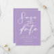 Den här vackra lilac Save the Date Card har en vacker vit typografi på en mjuk lila bakgrund för en vår eftermiddagsceremoni. Lavender Pastel inbjudan är ett känsligt färg-val för en elegant tillfälle.