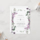 En vackert inbjudan till elegant bröllop med lila och lilak, vildblommor och grönt löv.