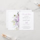 Det här vackert designade Spara datumkortet skryter en delikat sida gräns av vattenfärgade blommor i blad av mjuk lilak, blek violett och muterad olivolja, kompletterad med subtila beröringar av krämvitt elfenben och inställd mot pristinvit bakgrund. Den milda kaskaden av blommigtar ger en aning naturinspirerad elegans, perfekt för att ange tonen för ett romantiskt bröllop. Meddelandet är elegant skrivet i en kompletterande nyans av lätt lila, vilket ger en aning sofistikering. Denna inbjudan är perfekt för att par ska kunna hitta en blandning av det moderna stil med det klassiska blommigten inslag.