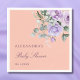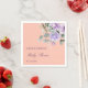 Personalize this Lilac Peach Peony Baby Shower Paper Napkin, featuring beautiful watercolor lavender peony flowers delicately accented with soft greenery against a soft peach background. These napkins are perfect for a floral baby shower, offering an elegant, chic touch in lovely shades of lilac. Perfect for adding a refined detail to your special celebration, these napkins bring together style and function to make your lavender baby shower memorable.
