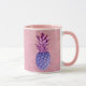 Färgfull lilak ananas med rosa löv på rosa glittrande bakgrund. Du kan ändra bakgrunden i färg genom att klicka på knappen "Anpassa" och sedan på inskriften "Klicka för att anpassa ytterligare".