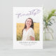 Detta moderna uttalande från studenten visar att ord till slut skrevs i lilac över ett enda foto. Kortets baksida kan användas för ytterligare text eller som inbjudan.