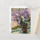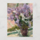 Ett vykort för bra med Impressionistisk målning av Mary Cassatt (1844-1926), en amerikansk konstnär med titeln Lilacs i en Window (1880). En underbar bukett av lavender blommor på en fönsterskiva.
