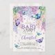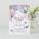 Lilacs och Butterfly | Bjukskidinbjudan - Elegant och en modern blommigt-babyduschinbjudan med vattenfärgspinnor och fjärilar med lush grönt-löv med modernt och frihandsskrivet typsnitt. Den omvända sidan av inbjudan innehåller lilac petals and butterflies. Anpassa med din egen formulering/information! Om du vill göra ytterligare anpassningar klickar du på knappen "Anpassa" och användor verktygen som är utformat för att ändra mallen. Det går inte att ändra alla teckningar.