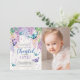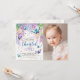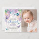 Lilacs och Butterfly| Inbjudan till foto på födelsedagen - inbjudan till Elegant och modern blommigt med vattenfärgslilakan och butterflugor med lush grönt-löv med modernt och frihandsskrivet typsnitt. Den omvända sidan av inbjudan innehåller lilaa petals och fjärilar. Anpassa med egna formuleringar/detaljer! För ytterligare anpassning: (1) Klicka på knappen "Anpassa" och använda verktygen för design om du vill ändra mallen. Alla teckningar kan inte ändras. (2) Om du föredrar tjockare kan du välja Papprare projektionstyp för projektionsyta.