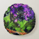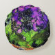 Lilakblomma och löv åldras i kardad mosaik rund kudde