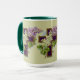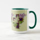 vintagemålning av den älskvärda purpurfärgade kristenkor med den guld- gränsen, härlig mauve och vit blommar, och stora gröna löv som flödar runt om de mörka lilorna, korsar.