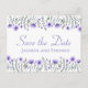 Tala stolt om för vänner och familj att du och din älskling är engagerade i den här charmerande blommigten lila vattenfärgsblommor Spara datumvykorten för förlovning. På baksidan av kortet finns information om bröllop som du skriver ut som komplement till typsnitt. Rulla ner om du vill visa matchande produkter som du kan ha nytta av.