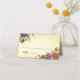 I bröllop Place Card visas en blommigt med rustik höstfärg med elegantens fallande lila, blåa, brända orangar och grönska.
