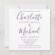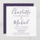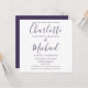 Med elegant namnteckning stil namn, kan denna snyggt enkel lila och vit bröllopsinbjudan i allt-i-ett-format vara personlig med all information om den speciella bröllopsdagen på omvänt, inklusive din OSA, logi och ytterligare information. Designad av Thisisnotme©