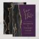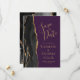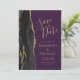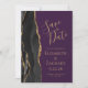 Det moderna bröllop spara datum-kortet från elegantens lämnat kant har en svart vattenfärgad agate gräns som trimmas med faux guld glitter. Anpassadet kombinerar handskrift, rityta och kursivt typsnitt på guld-färgad mot lila bakgrund. Den omvända sidan har en matchande svartvit och guld agate-design.