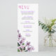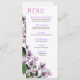 En ursnygg tealängdmeny av vattenfärgblommor från vår "lila förgrena sig" samlingen. Använd orangen "skräddarsy den" knäppas över för att sätta in din egna text. Det finns flera matcha produkter som är tillgängliga för denna samling: bröllop- och mottagandeinbjudningar, middagmenyer, möhippainbjudan, OSA kort, klistermärkear, foto tackar dig kort, magnetfavörer och mer. Önska en olik färg eller en ny anpassad design? Tillgängligt i vit med lilan och svart tavla med lilan.