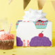 Lycklig 16:e födelsedagen. Anpassa namn och åldern i röd text. Vanilla cuptårta i en ljusblå förpackning med lila frost och körsbär på toppen. Originalteckningsutkast © TamiraZDesigns.