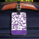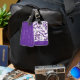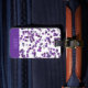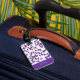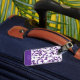Denna bagagemärkre presenterar en design av polka dots, i olikt skuggar av lilor, och en djärv lila görar randig. Randen och bakgrundsfärg på baksidaen, såväl som monogramen och texten, kan alla skräddarsy som önskade.