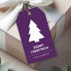 Den eleganta gåvan märker att presentera en härlig julgran mot en purpurfärgad bakgrund.