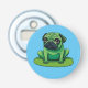 Cute grönt Pug liknar en groda sitta på en lilipad. Bakgrunden till färg kan ändras.