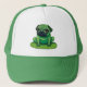 Cute grönt Pug liknar en groda sitta på en lilipad. Bakgrunden till färg kan ändras.