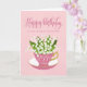 En pittoresk liten rosa tekopp fylld med en vacker bukett liljekonvaljer tillsammans med de handskrivna orden Grattis på födelsedagen på toppen av kortet och de handskrivna orden 53 idag med kärlekshjärtan på tekoppen. Ett sött födelsedags kort till din dotter som fyller 53 idag.