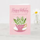 En pittoresk liten rosa tekopp fylld med en vacker bukett liljekonvaljer tillsammans med de handskrivna orden Grattis på födelsedagen på toppen av kortet och de handskrivna orden 80 idag med kärlekshjärtan på tekoppen. Ett sött födelsedags kort till din dotter som fyller 80 idag.