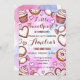 Fira din lilla älsklings stora milstolpe med denna charmiga Alla hjärtans dag Första födelsedagen Cupcakes & Godis Högtidskort Festinbjudan, med handritade vattenfärgade sötsaker, godis och cupcakes. Mjuka rosa, röda och sockerartade detaljer skapar en varm, kärleksfull design som är perfekt för en Alla hjärtans dag-firande.