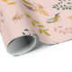 Fåglar, grenar och blommor på vit, persikofärgad och rosa bakgrund.