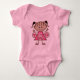 En underbar liten flicka på grisar och en rosa klänning innehåller en sträng av brev som stavar "TWO" på T-tröjor, kroppsdräkter, kort, klistermärken, påsar och mycket mer!