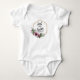 Den här söta bodyn för en babyflicka har en dubbel guldbåge med en blomsterbukett av lila prästkragar målad i akvarell. Inuti typsnittet står "lilla FRÖKEN Snygga BYXOR" i ett skrivet och ett vanligt teckensnitt. Du är välkommen att ändra teckensnitten om du vill genom att gå till "personliggör denna mall" och sedan "anpassa ytterligare".