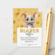 En liten mus är på väg, Låt oss fira idag! Utformningen av en tuggdusch för spädbarn med trendig och söt liten mus på osten mönster.Texten kan lätt vara personlig för en unik och elegant design för din speciella dag.