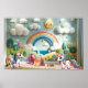 En fantasifull, färgrik mural pryder ett barnrum, med en glad sol, fluffiga moln och en levande regnbåge som sträcker sig över himlen. Nedan leker enhörningar med regnbågshov och manar på trägolvet, omgivna av förtjusande scenerier, och skapar en glad och fantasifull atmosfär. My Little Pony har tyvärr fått en blötis!