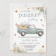Höstbabyduschinbjudan med en rustik utformning som omfattar en plocka-upp-lastbil, pumpor och höst löv.