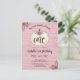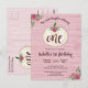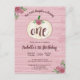 Den söta, rustika designen har en vit pumpagurka mot en bakgrund av rosa roséguldträ och handmålade akvarell-roséguldblommor, med texten "Vår lilla pumpa fyller år" och "ett" inuti pumporna. Den anpassningsbara texten visas i burgunder eller marsalafärg med populär typsnittsdesign. Du kan anpassa inbjudan för ditt eget evenemang genom att ändra texten. Baksidan av vykortet har en ljusare version av den rosa trädubacken och en anpassningsbar returadress för att förenkla din utskick, tillsammans med en annan anpassningsbar meddelanderad som du kan anpassa.