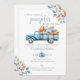 Den här snyggten är en inbjudan till babyduschen med rustika höst, höst löv och en söt blå fullt lastbil av pumpor. Med registrets QR-kod och händelseinformation på baksidan. Designad av Thisisnotme©