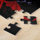 söt rödröd djävulen med en lång barband svan som håller en pråm