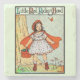 Det här är en vacker reproduktion av en illustration ur en gammal barnbok, som fångar oskulden och undret i Bröderna Grimms klassiska saga, Rödluvan. Den unga hjältinnan är avbildad i en charmig, lite retro stil, iförd en vit prickig klänning, röda skor och hennes berömda röda kappa. Scenen ramas in av ett träd och vilda blommor, med en färgglad fjäril som ger en lekfull touch. Titeln "Rödluvan" är skriven med ett dekorativt, gammaldags typsnitt högst upp. Detta konstverk är perfekt för dekoration av barnkammare, lärarepresenter, bokälskare och alla som letar efter en unik, nostalgisk design som firar litterära klassiker.