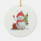 lilla snögubbe med julgran julgransprydnad keramik