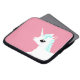 Ett laptop sleeve med en vidhäftande vektorbild av en vit Unicorn med en blommande blå mane på rosa.