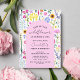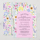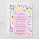 Denna "lilla vilda blomma" vårflickas inbjudningsdesign för 1-årsfirande har en vildblommebakgrund bakom en elegant rosa båge som sätter scenen för att presentera dina festdetaljer. Anpassa denna för en flickas födelsedag oavsett ålder. Denna design är idealisk för en födelsedagsfest på våren eller sommaren. Se hela den matchande partykollektionen.