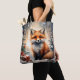En liten rödräv sitter mellan två evergreen träd, med inslagna gåvor vid fötterna och snö faller försiktigt på den här söta helgdag till väskan. Perfekt för alla som kärlek djur och natur.