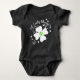 Pressa upp baby för St. Patrick's Day med den här söta, lil'Lucky Charm-designen som har en lycka till-fyrklöver i vitt och accentuerad med blommor och hjärta. Visas här på en svart bodydräkt från baby. Anpassa den här designen så att den blir perfekt för alla baby!