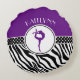 Rundan för vildzebra tryckgymnastik kudder i lilor. En gymnastsilhouette poserar insida en cirkla, och det finns "polka-pricker" banret för kontrast. Tillfoga ditt egna namn, innan du beställer! Använd "skräddarsy den" knäppas för mer alternativ, däribland en olik stilsort, dessutom!