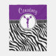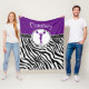 Filt för ull för för vildzebra tryckcheerleading eller pom i lilor. En hejaklacksledare- eller pomflickasilhouette poserar insida en cirkla, och det finns "polka-pricker" banret för kontrast. Tillfoga ditt egna namn, innan du beställer! Använd "skräddarsy den" knäppas för mer alternativ, däribland en olik stilsort, dessutom!