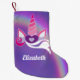 Denna julsäsong fångar regnbågen med denna themed julstrumpa för den roliga purpurfärgade regnbågeunicornen. Monogram med namn som ger din strumpa ett personligt handlag.