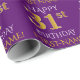 Denna slående in pappra design presenterar en meddelandenågot liknande "LYCKLIG 31aFÖDELSEDAG", med "31an" som har en utseendemässiga faux/efterföljdguld. Den presenterar också ett namn, som kan vara personligen, och en purpurfärgad kulör bakgrund. Den kunde kanske användas, när du slogg in gåvor som gav sig för somebodys första födelsedag trettio. [~Z0000134]